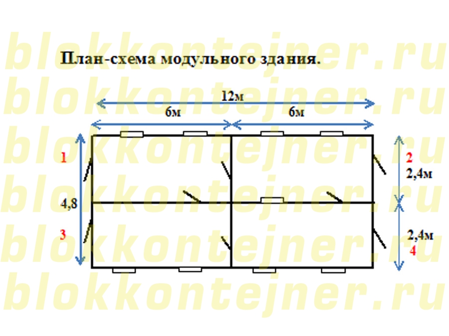 Модульное здание «Столовая» -  12,0 *4,8*2,5м  состоит из 4 шт.